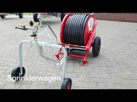 Sime Funny Sektor Regner. ( Wurf-weite maximal bis ca. 35 Meter ) auf einen 3-Spurigen in Breite verstellbaren Regner-Wagen.