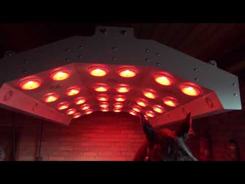 Ausgestattet mit 30 PHILIPS Infrarotstrahlern à 175 W und 22 Lüftern, trocknet das ALU SOLAR Ihr Pferd schnell nach einem intensiven Training. Neben den roten Lampen, die die Durchblutung anregen, das Wohlbefinden verbessern und eine beruhigende Wirkung haben, bietet das Solarium auch die Möglichkeit grüne Lampen einzubauen, die für Entspannung und antidepressive Effekte sorgen, sowie weiße Lampen, die bei der Behandlung von Hauterkrankungen helfen, die Synthese von Vitamin D3 anregen und Tageslicht simulieren, was sich positiv auf den Biorhythmus auswirkt.